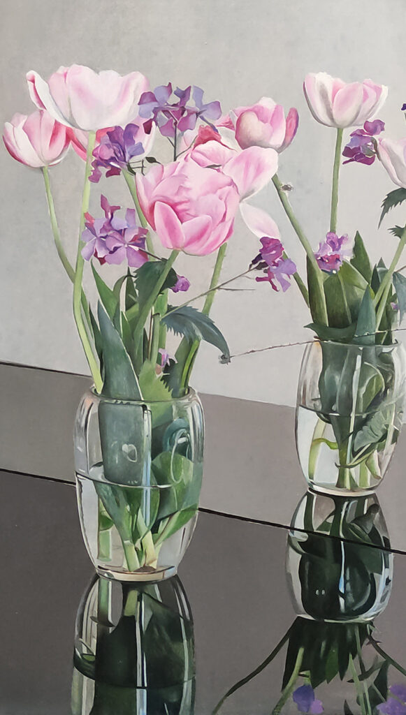 „Rosa Blumen“ – Öl auf Leinwand, 40 auf 60 cm, 2025